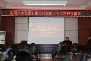 根據(jù)市國資委黨委的統(tǒng)一安排,12月25日下午,市國資委黨委委員、副主任鄧世海來到襄陽水務(wù)集團(tuán)有限公司開展黨的十九大精神專題宣講。集團(tuán)公司本部全體干部職工、襄陽中環(huán)水務(wù)有限公司班子成員及基層黨支部書記和黨務(wù)工作人員共50余人參加了學(xué)習(xí)。