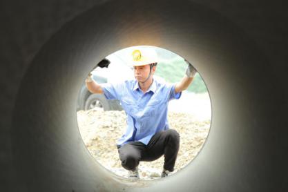 深土溝中作業(yè)  爬進(jìn)管道安檢