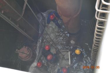 水廠機(jī)修人員下到12米沉水井內(nèi)的漏水點(diǎn),詳細(xì)檢查后發(fā)現(xiàn)2號取水泵底座共6個(gè)固定螺絲,2個(gè)已斷裂,3個(gè)已松動(dòng),導(dǎo)致2號取水泵運(yùn)行時(shí)底座不穩(wěn),嚴(yán)重影響供水安全,機(jī)修人員立即向公司領(lǐng)導(dǎo)匯報(bào),制定了維修方案。